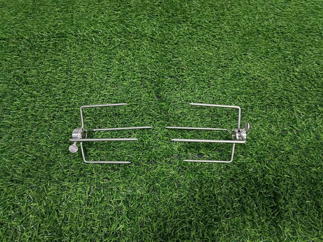 鶏のための小さい熊手のRotisserieのフォークは肉の添付の鶏、ジャイロコンパス、ロールまたは全動物以外焼串にほとんど肉のために適している。長いねじナットは調理している間動きを取除くために焼串に熊手を堅く留めることができることを保障する。正方形のつばのローストのために適した10mmまで正方形を串刺しにする。意志のスーツはまたロックナットとして6mmおよび8mmの正方形の焼串十分に長く焼串へ突き通ることである